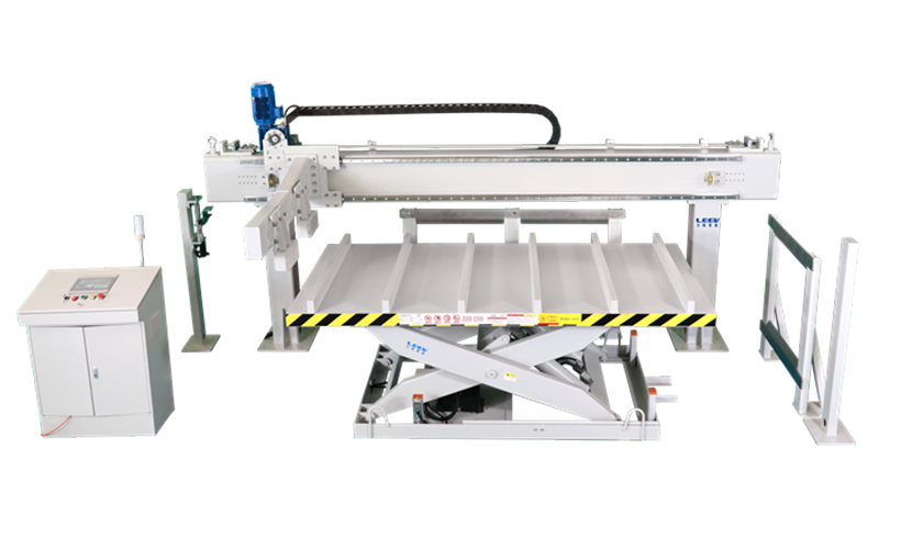 本機是與升降機配合使用,將堆垛板件進行單張拆分送料,設備可以根據系統設定自動調節推板厚度,輸送范圍內各種不同厚度板件。