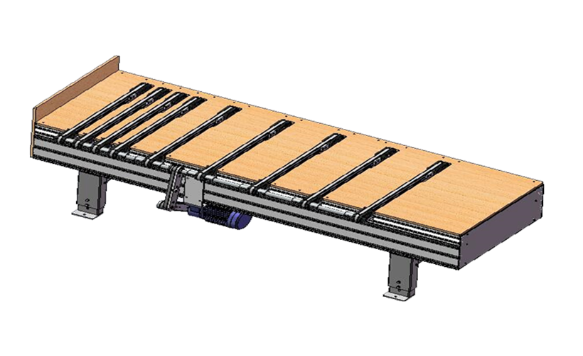 適用于家具廠自動化打包使用,人工將需要打包的板件堆疊靠到位進行輸送,帶傳動在傳動速度較快的時候噪音小,與鏈傳動相比更具有替代性。需要與縱橫平移機配套使用。